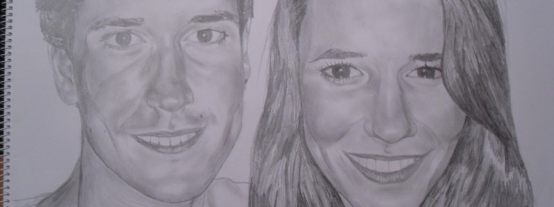 Dom hired me to draw this portrait for the couple’s anniversary, I had to combine two separate photos, I was lucky it turned out well!